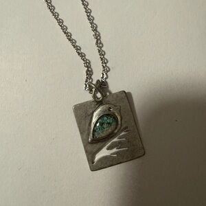 Elegant silver necklace featuring a turquoise bird pendant. Perfect for adding a touch of sophistication to any outfit. Not sterling