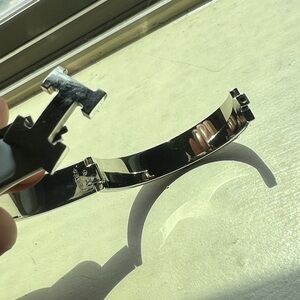 Authentic Hermès Clic H bracelet in silver and white. Bracelet is used with minor signs of wear. Box not included. Please reach out with any questions!