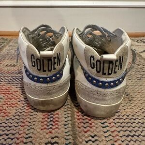Golden Goose high-top sneakers featuring a silver star and glittery laces sz 41