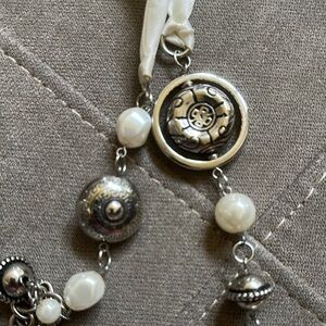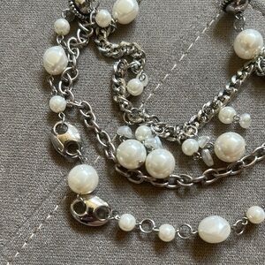 Silver and White Layered Pearl Necklace with Vintage Charm