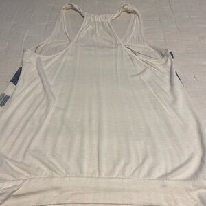 Shimmer in style with this elegant silver and white striped top. Perfect for any occasion.