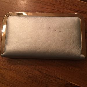Silver with gold trim. There is a small scratch on it. See last picture.