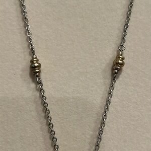Versatile necklace. Mostly silver but with some gold bead accents. Goes with anything! Very good condition. See pics for length.