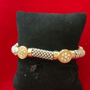 Silver and gold-tone vintage stretch bracelet with rhinestones