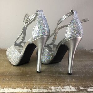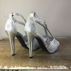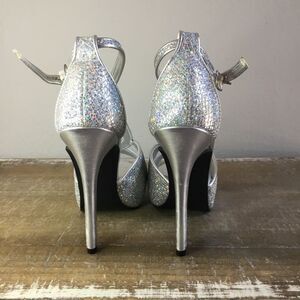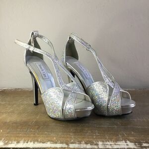 Silver and sparkle stiletto heeled shoes platform formal party wedding 5 1/2