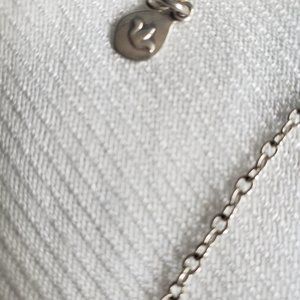 Pretty and versatile necklace of 926 silver and green stone with green and taupe beads. 32 in chain with some adjustable links. Small silver charm on end of clasp as shown in photos. Center green pendant stone is 1 1/2 in in height. Original price and origin unknow as it was a gift several years ago. As shown in photo necklace length when clasped is a 16 in drop (32 in chain).