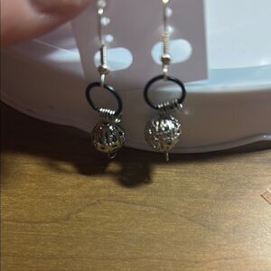 Elegant dangle earrings featuring a silver and black design. Perfect for adding a touch of sophistication to any outfit. Crafted by for a unique style statement. Handmade