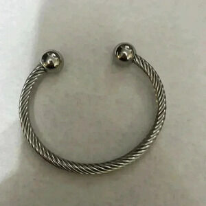 Silver bangle with balls at the end. Resembles the David Yurman Solari style.