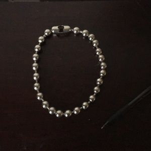 Super cute good material bought thrifted and hasn't turned copper a nice length on it just below collar bone it should lay