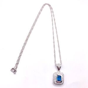 Women’s female minimalist Silver tone dainty twist chain blue and clear cubic zirconia square pendant necklace with a spring ring clasp. New with tags See pictures for measurements.