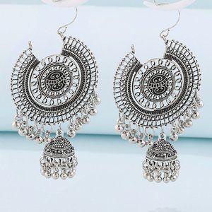 Silver boho chic earrings Indian style hoops dangle jewelry festival vacation
