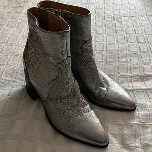 Cowboy style silver booties. About 2in block heel.