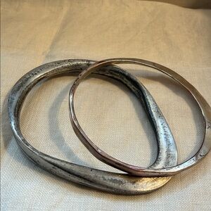 These are cool! They have a used look to them on purpose. The larger one is very heavy and has an oxidized look so does the smaller one but not as heavy.