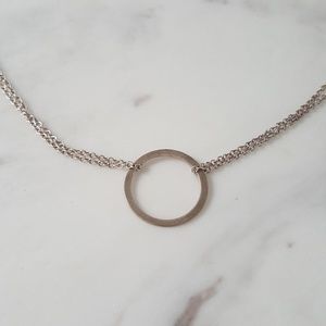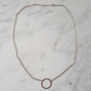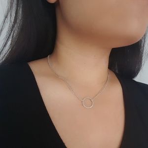 Silver-plated circle necklace with double-strand chain. Simple & timeless design.