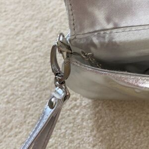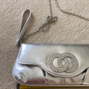 Like new silver clutch with removable wrist straps and silver chain 10x5