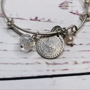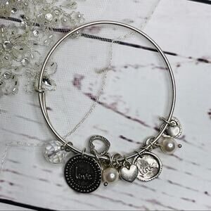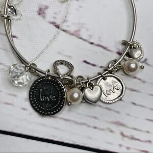 Charm bracelet with LOVE charms, beads, pearls, hearts.