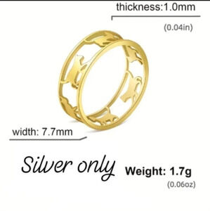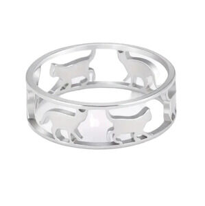 Discover my dainty silver color ring with unique cat-shaped cutouts that add a touch of elegance and charm to your personal style. This cat-themed ring is the purrfect accessory for cat lovers.