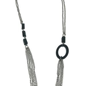 Silver colored and black long necklace