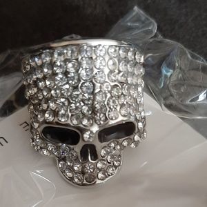 Silver gold and black titanium crystal goth skull punk Biker ring new