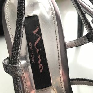 strappy dark silver heels. perfect for prom or homecoming or even just a night out. look great with everything. only wore these twice, still in great condition:)