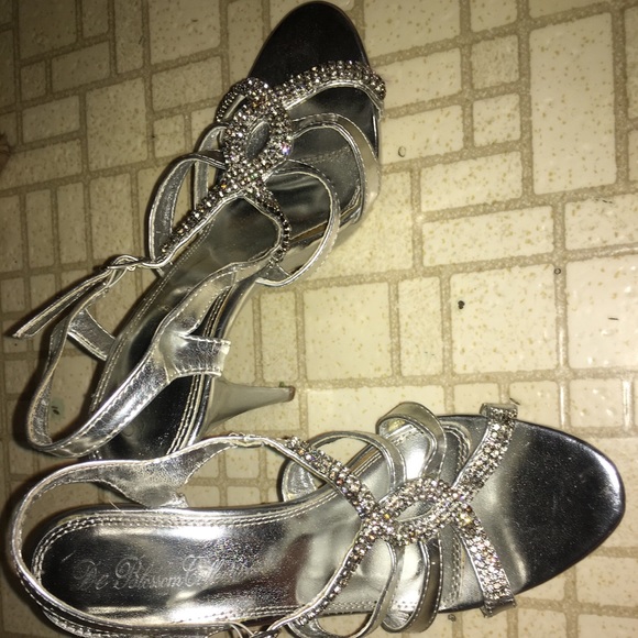 One time worn silver heels! super cute, couple tiny diamonds missing but not super noticeable