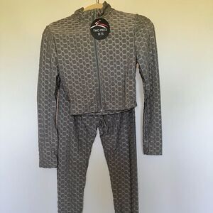 Silver honeycomb active set two piece leggings and long sleeve crop zip …