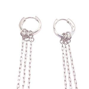 Silver huggy hoop earring with long dangle chains