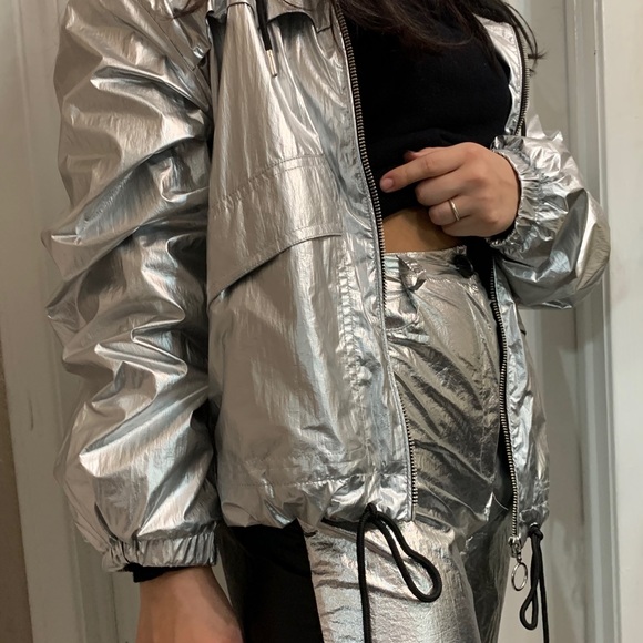 Cute silver jacket , goes with pants. Sold separately