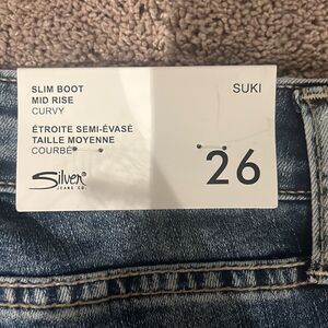Silver jeans co! Slim boot mid rise curvy size 26