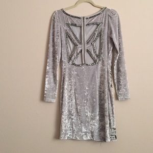 Silver with embroidery bought from urban outfitters. Satin/velvet material, zip up back. Worn once out on the holidays. Perfect for NYE or the holidays or even homecoming/ prom