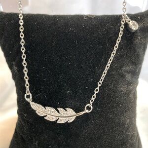 This silver necklace is a leaf with a small jewel on the side. For all nature lovers this is the necklace for you.