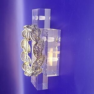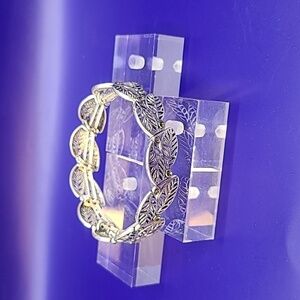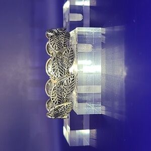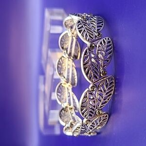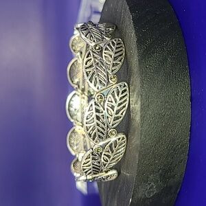 Silver leaf stretch bracelet. Faux stones. Vintage. No maker's mark. Pre-owned condition. Never worn.