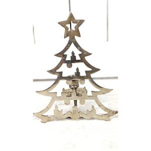 Silver metal Christmas tree taper candle holder