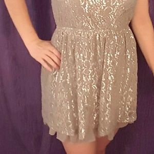 Pinky brand metallic dress is great for parties and the holidays! Easily dressed up with jewelry and shoes, or can be worn as a casual party dress (I even wore it once with my red converse!) Dress has elastic cinched waist so fits a wide range of sizes. Super versatile and a great deal. Sold used elsewhere for $15-26.