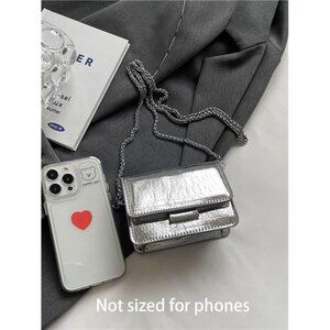 Silver metallic mini purse glitter clutch crossbody bag evening party handbag