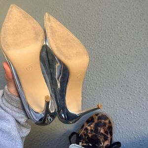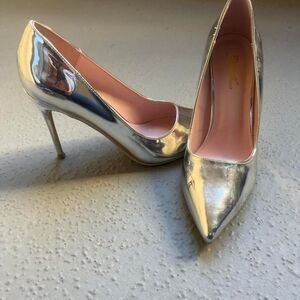 Silver metallic pointed toe stiletto heels size 7