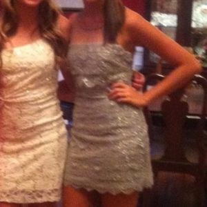 Silver mini dress perfect for a homecoming, cocktail, or other special occasion!
