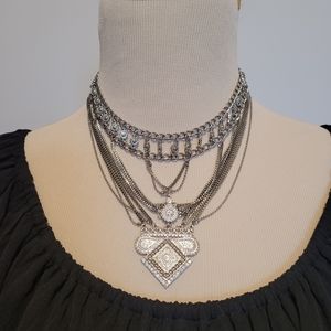 Silver multi-layered ornate choker/necklace