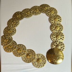 Silver on silver wide adjustable statement belt with intricate detailed discs