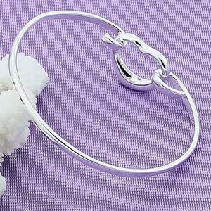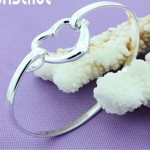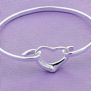 Silver plated Charm Love Heart Adjustable Bangle Bracelet