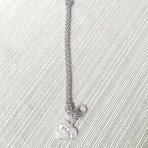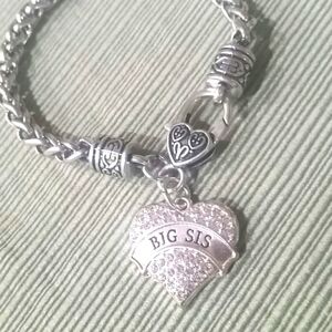 Silver plated bracelet with Cubic Zirconia pave charm that reads big sis.