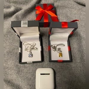 Silver plated gemstone pendant necklaces, 2 pieces with gift boxes