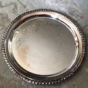 Silver plated platter. Intricate design. Some tarnishing (see photos). 12 1/4” in diameter.