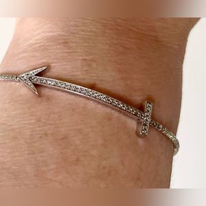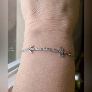 Silver plated with arrow and clear rhinestones adjustable bracelet.