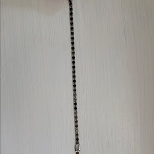This bracelet showcases a classic design with small, round silver toned rhinestones that create a shimmering effect (some look black in certain light). The uniform beads are strung together in a single strand, offering a timeless and elegant look. Perfect for adding a touch of sophistication to any ensemble. Wore once to prom.