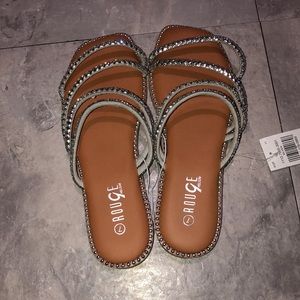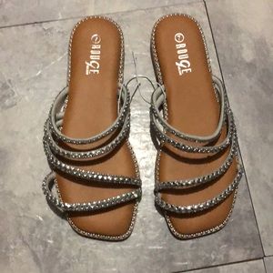 Silver rhinestone slipper sandal size 7 but fit size 6 women brand new