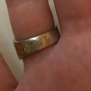 Size 6. I bought from a pawn shop several years ago. It was in the silver section. Has scratches but is a great piece to any ring collection!