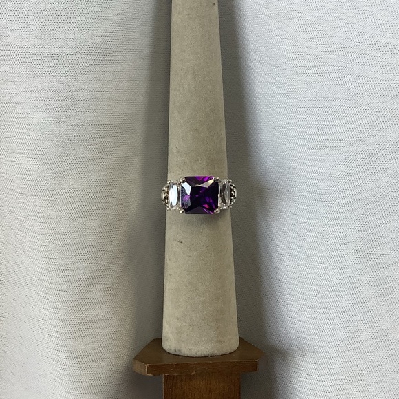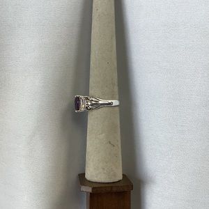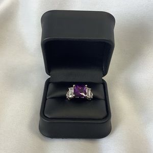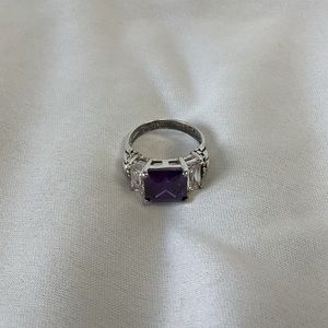 Sterling silver ring. 8x5 mm purple CZ and two white CZ’s