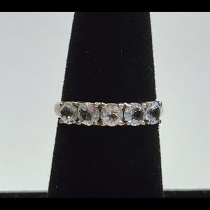 Silver ring covered in blue abs clear crystals. Size 7