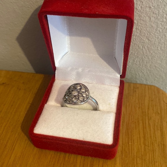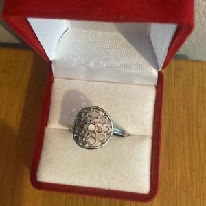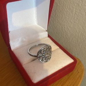 This silver ring is topped off with a beautiful floral patter and fits snugly for anyone with a size 7 in women’s rings (US sizing). I can’t remember the brand and I am willing to lower the price.